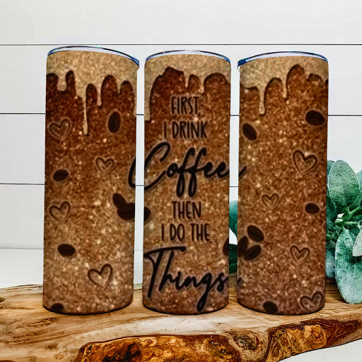 Introducing our “first, I drink coffee then I do the things” 20oz Tumbler provides 360 degree fun!