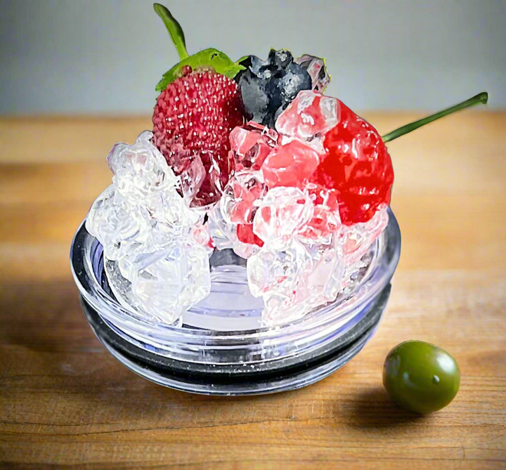 lid topper with fruit and crushed ice