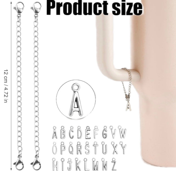 This charm accessory offers a solution to the common issue of cups getting mixed up. Its personalized design allows you to add any letter A-Z, making it unique to your cup. The lobster clasp silver chain is expertly crafted using advanced electroplating technology, ensuring a smooth and shiny surface that won't turn black over time. This makes it a durable option for long-term use.