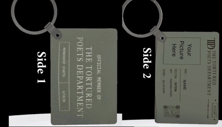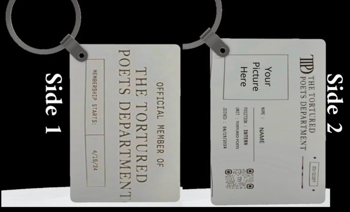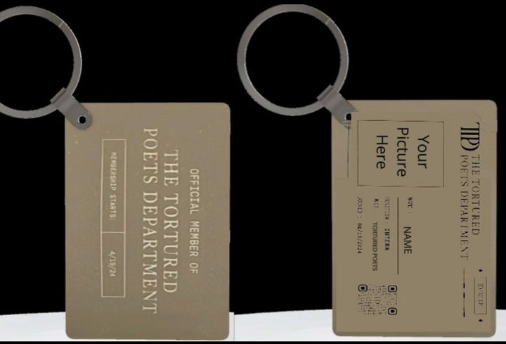 Poetry lovers will adore the Kreative Kreationz Personalized Members Only TTPD Keychain—one side reads "Official Member of The Tortured Poets Department, Membership Starts: 4/19/24," and the other features a custom name and photo ID.