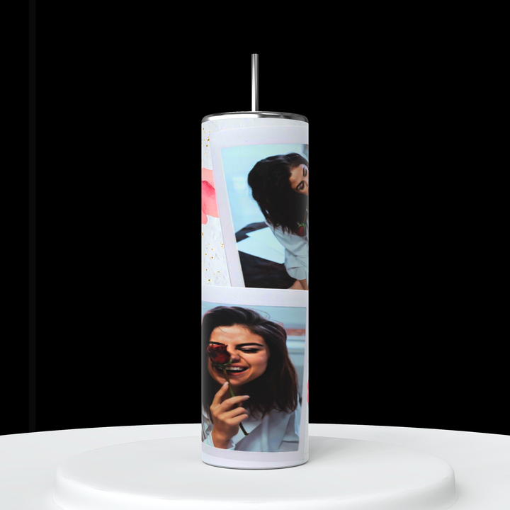 Introducing our Selena Gomez Coral Collage 20oz Stainless Steel Tumbler is a sleek and stylish addition to your drinkware collection.