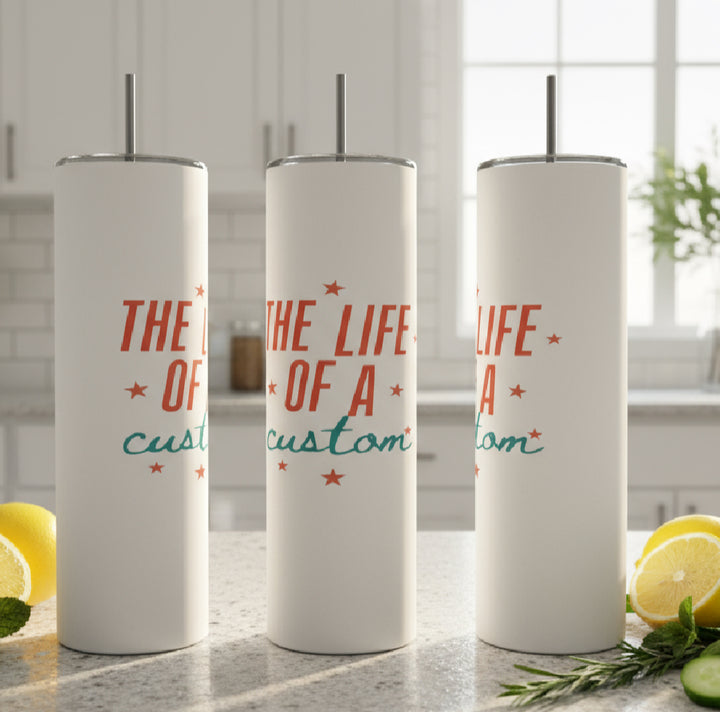 Celebrate creativity your lifestyle with our “The Life of a Custom” 20oz Tumbler — the perfect accessory!